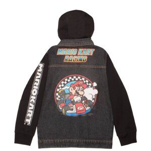 Nintendo Super Mario Bros Boys' Casual Fashion Hoodie, Mario Kart Racing Video Game Character-Inspired Hooded Denim Jacket For Kids (Size 7)
