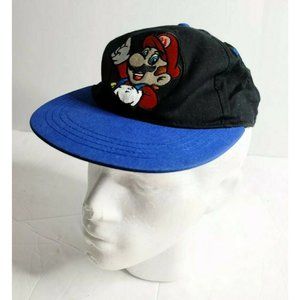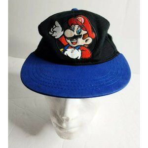 Nintendo Super Mario Embroidered Blue Baseball Hat Cap Snap Back Black . Has small spot on bill as pictured otherwise in good condition