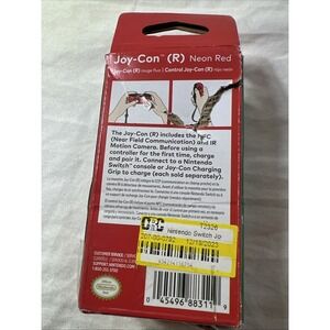 The Nintendo Switch Joy-Con (R) in Neon Red is a controller attachment designed specifically for the Nintendo Switch console. With its vibrant red color and compatibility with the Nintendo Switch, this controller offers a high-quality gaming experience. As a product from the reputable brand Nintendo, the Joy-Con is known for its innovative design and functionality, allowing users to enjoy their favorite games with a reliable and immersive controller.