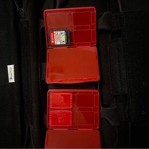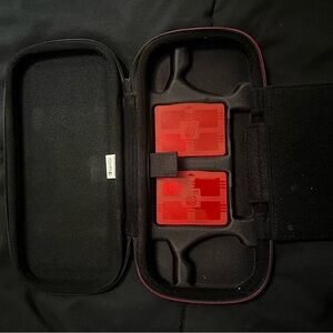 Comes with protective carrying case, micro SD card and a game (Cooking Mama). Everything will be packed into the red protective cases. Will NOT include charging cord.