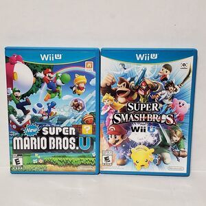 Nintendo Wii U 2x Game LOT Super Mario Bros U, Super Smash Bros Working Tested