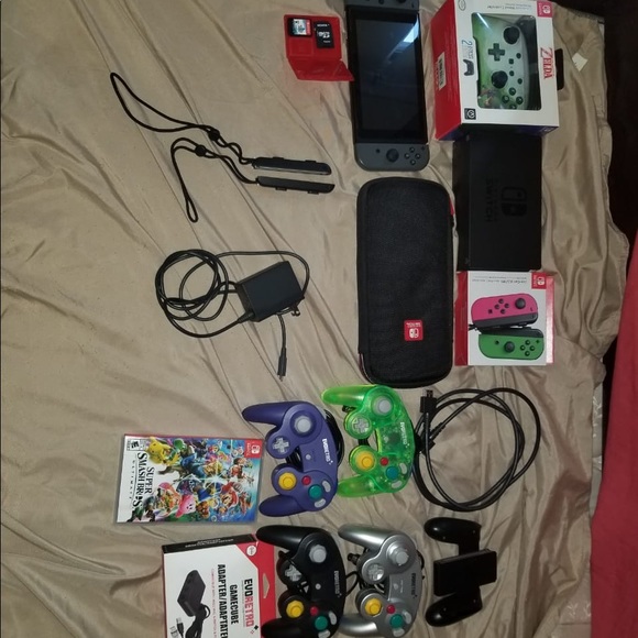 Like new, 2 games, 4 GameCube no selling for parts. Joy-con l/r new. Control pro new I don’t know the platform I just put any of it. Screen protector