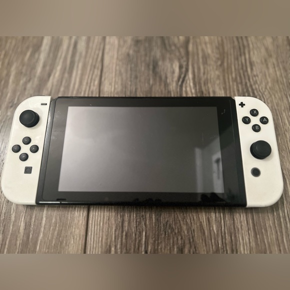 Includes Nintendo Switch console, both controllers, Nintendo case, Nintendo dock, HDMI cord and controller connector. Minor scratch (see photo) but works perfectly, small chip of corner of plastic but does not affect functionality, all used and in good condition. Every item in pics are included! Including headphones.