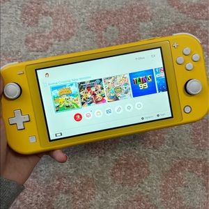 Nintendo switch lite in yellow, in excellent condition. Bought and only used a couple times. Comes witch charger, animal crossing game and carrying case as well.
