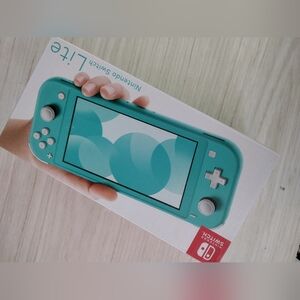 Brand new in the box never used only opened to take pictures Nintendo switch lite; hand held game turquoise in color.