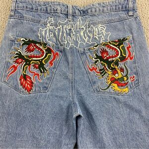 Ninth Hall Ambush Baggy Y2K Skater Dragon Embroidered Jeans Size: 32