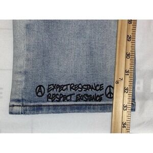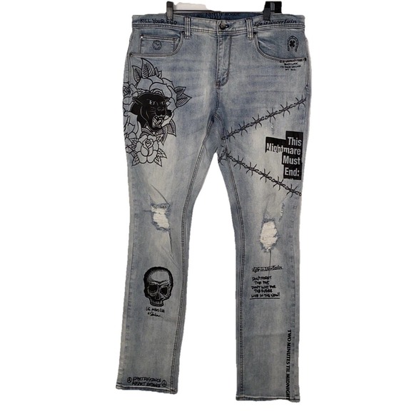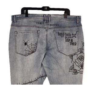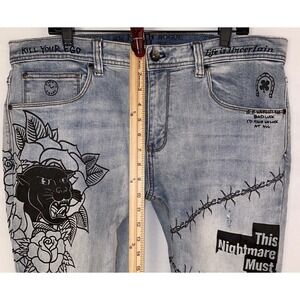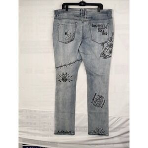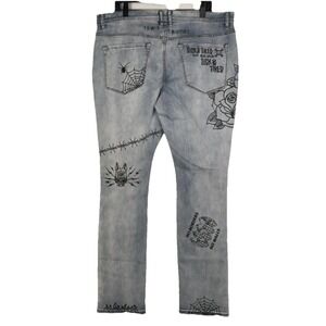 Ninth Hall Rogue Men's Skinny Jeans Graphic Print Lt Wash Sz 38x34 Gothic grunge
