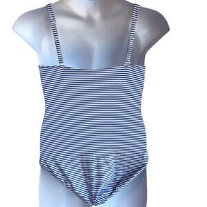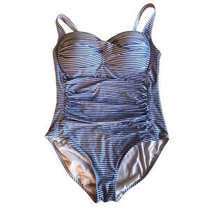 Nip Tuck One Piece Blue and White Striped Ruched Swimsuit size 12