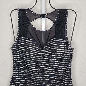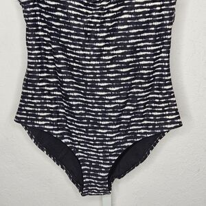 Nip Tuck Swim Black White Stripe Mesh Insert One Piece Swimsuit Size 12