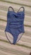 Make a splash with this elegant blue striped one piece swimsuit. Perfect for a stylish day at the beach or pool.