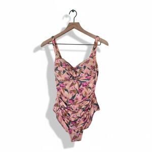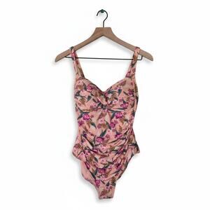 Nip Tuck Swim Joanna Floral Ruched One-Piece Swimsuit Peach Multi Size 10