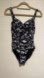 Nip Tuck Swim Ruched Black White Floral One Piece Swimsuit Bathing Suit Like New