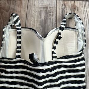 Nip Tuck Swimsuit 8 Twist Front One Piece Black Gold Multifit Cup stripe comfy