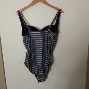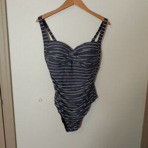 Cute, Nip Tuck Swimsuit Bond-Eye Australia Grey Stripe halter style- multi fit cups- adjustable straps, slimming ruched sides- inner mesh lining-Excellent, like new condition- no flaws or signs of wear Adjustable straps Lightly padded cups. US size 12