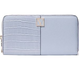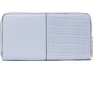 Nip luxury VS sky blue 1/2 vegan croc gold tone v zip long wallet