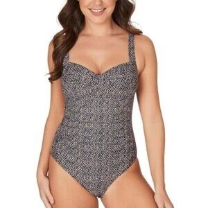 NipTuck Joanne Foil Twist Front Tummy Control One Piece Swimsuit Navy Blue