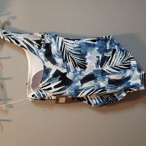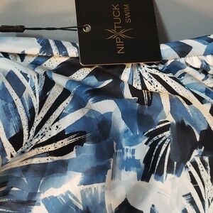 NipTuck NWT Blue and White Leaf Print One Shouldered Swimsuit, 6