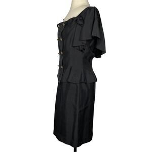 Nipon Boutique 2 Piece Silk Set Blouse and Skirt Peplum Ruffle Bow VTG Black 4