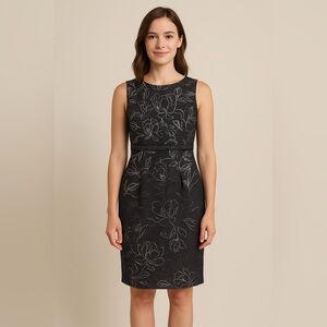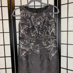 Nipon Sheath Flower Sleeveless Sheath Summer Dress Silver Grey Small 2