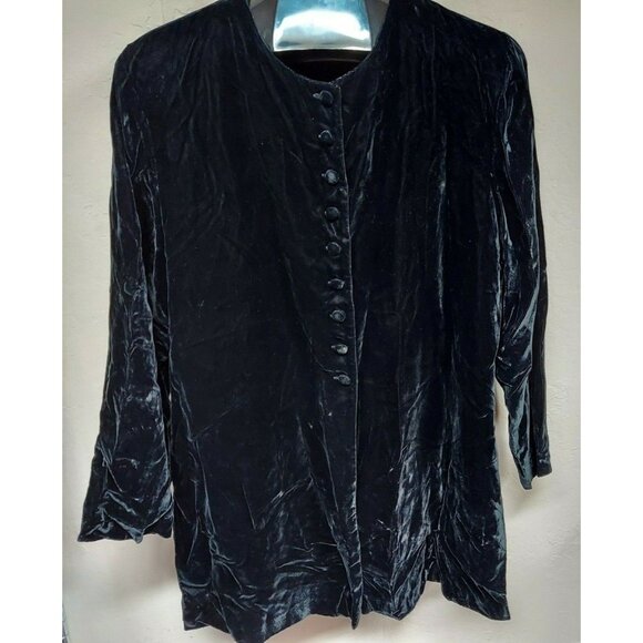 Nipon Studio Women's Black Velvet Button-Font Cardigan/Jacket Long Sleeve
