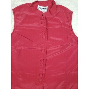 Nipon Studio Women's Top 100% Silk Sleeveless Button Front High Neck Red Sz 6