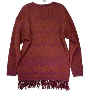 Nipon Studio Women's Vintage Sweater Embroidered Fringe Wool Cotton Red XL
