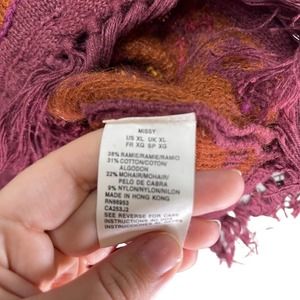 Nipon Studio Women's Vintage Sweater Embroidered w/ Fringe Mohair Wool Cotton