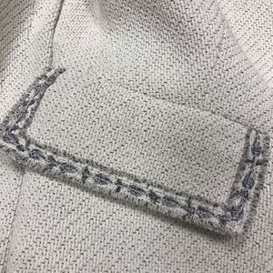 Gorgeous matching set - white with grey metallic thread throughout and trim around pockets and edges , slight raw edge.