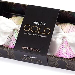 Nippies Gold Couture nipple covers iridescent sequins with white bow New in box