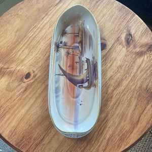 Nippon 12" Porcelain Hand Painted Canoe Shaped Dish / Tray