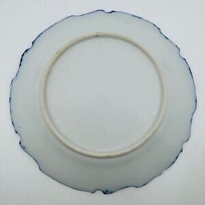 The Nippon Cobalt/Gold/Green/Pink Vintage Plate features a beautiful floral design with purple flowers and a decorative flower-edged rim. This porcelain ceramic piece is a charming addition to any collection or display.