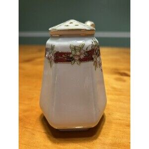 Add a touch of vintage charm to your kitchen with this beautiful Nippon porcelain sugar shaker. Hand-painted with a delicate floral pattern and finished with a glossy shine, this sugar shaker is a stunning example of art pottery from the early 20th century. Made in Japan in 1911, this original piece is a must-have for any collector or lover of decorative cookware.