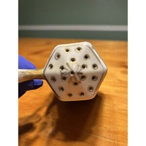 The sugar shaker features a decorative design that adds elegance to any table setting. Perfect for use or display, this vintage sugar shaker is a unique addition to your collection.