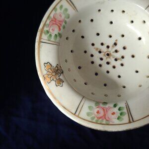 Nippon Hand Painted Porcelain Tea Strainer With Floral Design