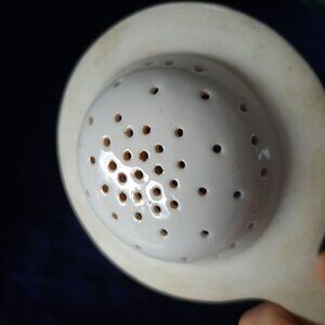 This charming tea strainer showcases intricate hand-painted floral patterns, adding elegance to tea time rituals. Durable porcelain construction ensures longevity.