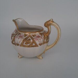 Nippon Hand-Painted Floral Cream Pitcher Gold Trim Porcelain Footed Vintage
