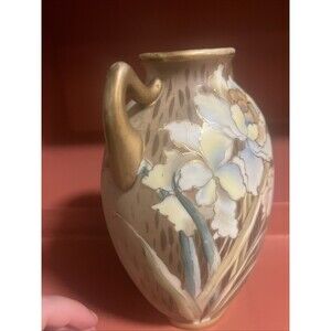 Nippon Vase Floral Hand-Painted Gold Trimmed double Handled Japan 7.5”