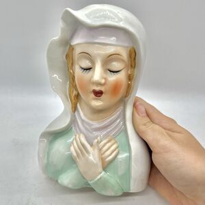 This is a hand painted porcelain bust of Madonna Virgin Mary. Does have light marks on the top of the head and side as pictured, no chips or cracks. Measures about 6.5" tall and 4.25" wide.