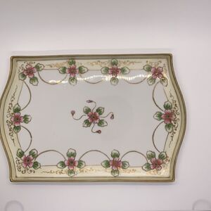 Lovely Vintage Nippon Rose Serving Tray Dish can be used on the vanity or perhaps a serving tray for petit fours or other sweets. Can also be hung on the wall with a plate hanger. Sure to grace any table. In excellent used condition showing minimal marks as pictured.