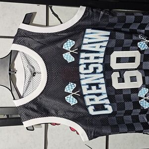 Nipsey Hussle Crenshaw Checkered Basketball Jersey Size Medium NWT # 60 White Blue Gray Black by Headgear Classics Nostalgia R.I.P
