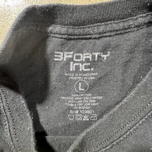 Nipsey Hussle “Legend / Prolific” graphic tee by 3Forty Inc. Black 100% cotton shirt with bold red and gold artwork, graffiti-style text, and large portrait graphic. Modern streetwear memorial-style design.
