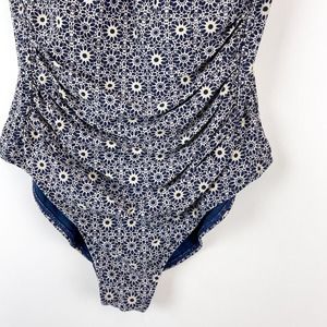 Niptuck (10) Womens Ruched Multi Fit Cup One Piece Swim Suit Floral Navy Blue