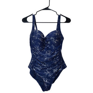 Niptuck Garden Line Foil Joanne Twist Front Slimming Swimsuit 6 One Piece