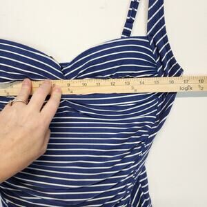 Niptuck One Piece Swim Suit Size 12 Blue White Striped Multi Fit Cup Ruched Waist