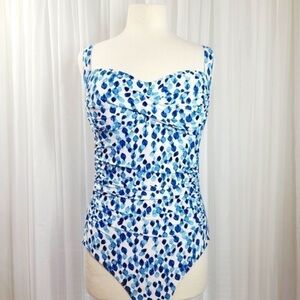 Niptuck Petal Plunge Joanne Twist Front Tummy Control Swimsuit blue white size 4