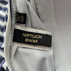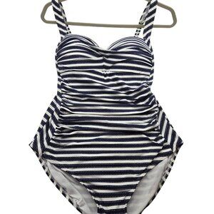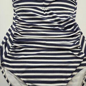 Niptuck Swim 8 Blue White Striped One-Piece Swimsuit Ruched Multi-Fit Cup Slimmi