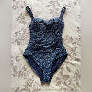 Niptuck Swim Joanne Blue Ruched One Piece 10 Shaping Smoothing Beach Vacation