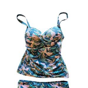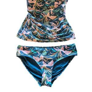 Niptuck Swim Suit 2 Piece 10 Womens Green Tropical Pullover Beach Set