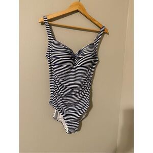 Niptuck Women's 10 Twist Front One Piece Swimsuit Blue Sorrento Stripe Nautical