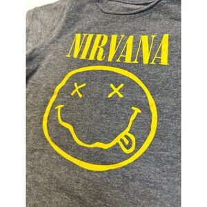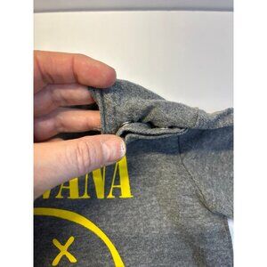 Nirvana baby T-shirt from 2018 has a snap on the left shoulder gray and yellow gently used smoke free pet friendly home overall good condition.